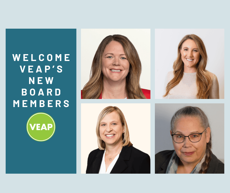 Please join us in welcoming Christine, Kirsten, Megan, and Lisa to VEAP’s Board of Directors! We look forward to drawing on their expertise and leadership as we continue advancing our mission.